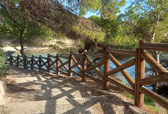 The optional excursion took us along the edge of the Sierra Helada Natural Park, in pursuit of the Albir Lighthouse. The path ambled its way gently up and down the edge of the mountain. The views of the Mediterranean coastline were spectacular! The colours seen on route added much to the amazing scenery: autumnal colours of the trees and plantation, set against the background of whitewashed buildings, the browns, yellows and greys of the mountain side, that nestled the side of the path, the fantastic dark blue sky with the sun’s white reflection glistening on the beautiful deep blue sea, all of which made our walk a most wonderful and memorable experience from our week here. The Lighthouse museum gave some historical background and insight into the harsh realities of life for those who had lived and worked there. The remains of the Ochre Mine were visible from the path, giving an historical glimpse into the area’s past.